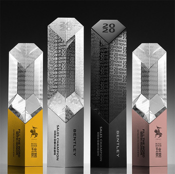 High Quality Customize Trophy Crystal Transparent Custom Size Solid Wood Bottom Crystal Trophy